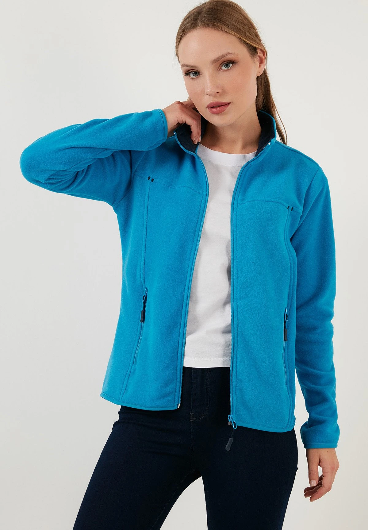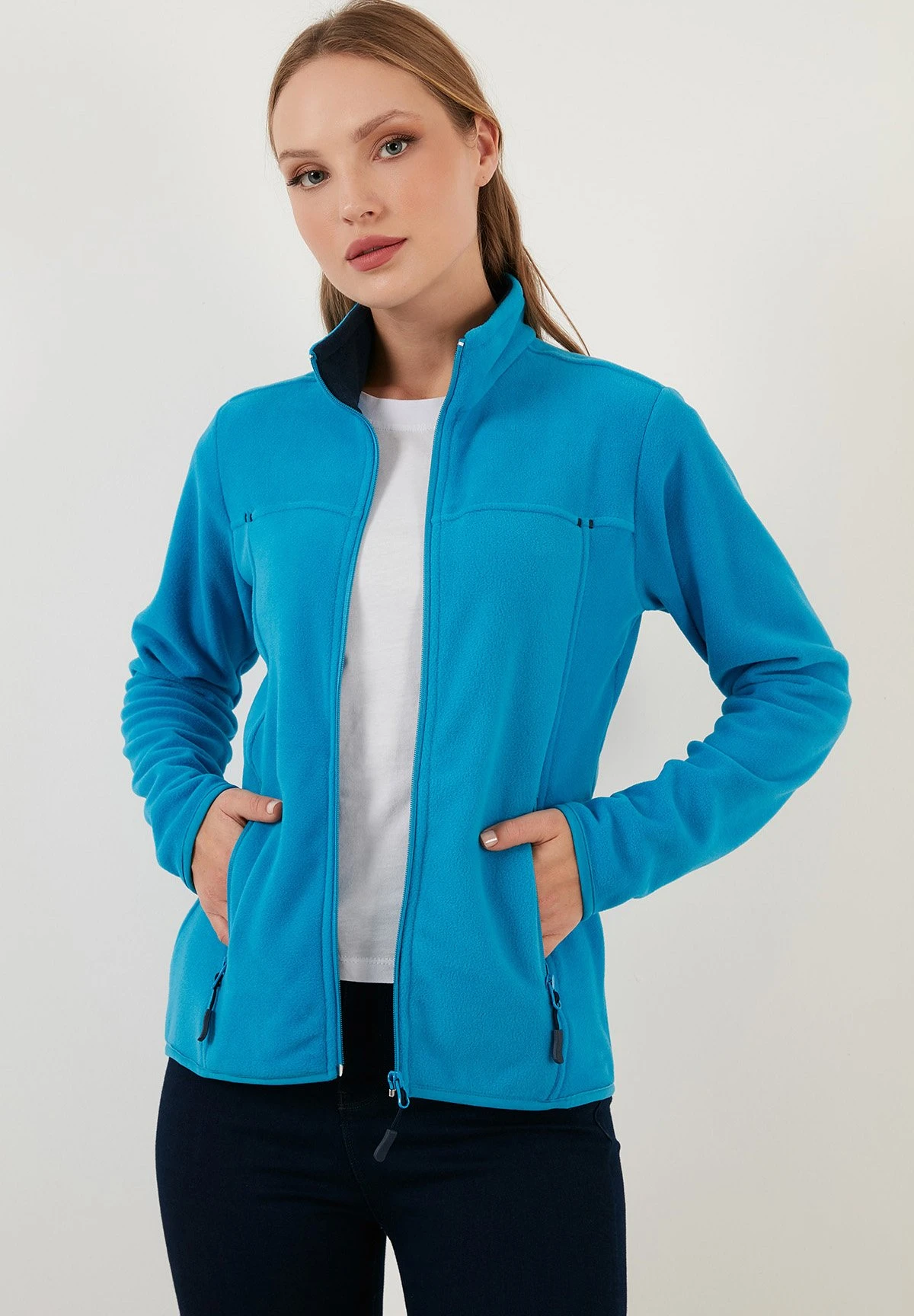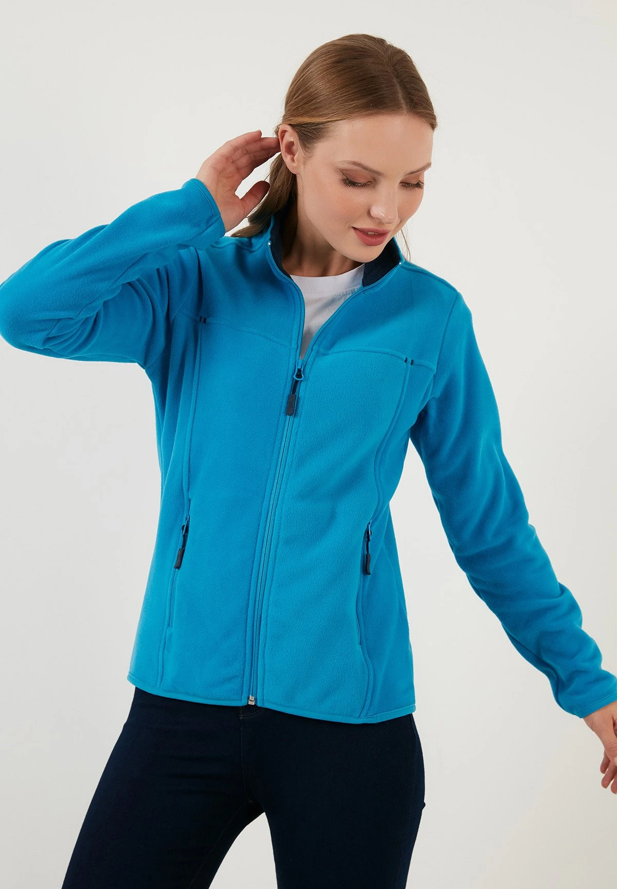 LELA High Collar Zipper- Fleecejas – Turquoise