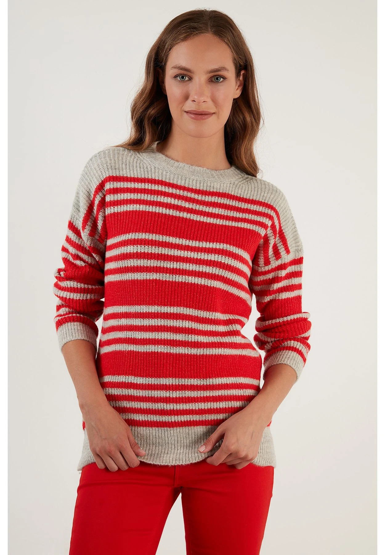 LELA Regular Fit – Trui – Light Grey Orange