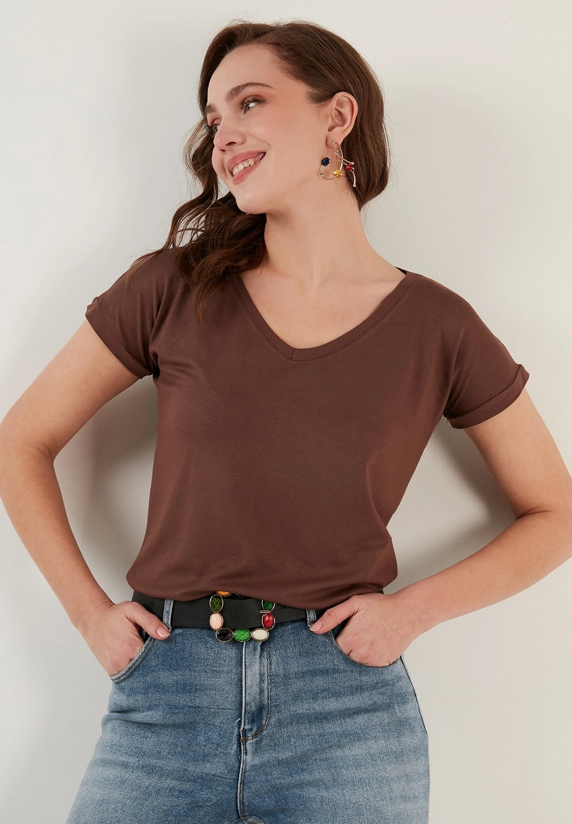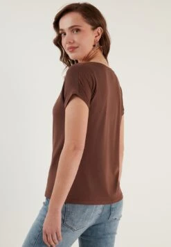 LELA V Neck- T-Shirt Basic – Brown